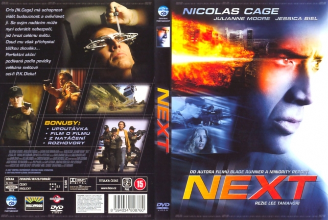 NEXT je adaptací povídky Golden Man od jednoho z největších velikánů světové sci-fi literatury P.K. Dicka. Cris Johnston (N. Cage) je obdařen schopností vidět do budoucnosti a také určovat správný tok budoucího času. Novodobý mesiáš, který musí spasit lidstvo a především svou rodinu. Někdy to ale osud zařídí tak, že si musíte vybrat jedno, nebo druhé... Možná ale existuje ještě nějaká DALŠÍ... možnost. Každému, kdo si přečte jména tvůrců, musí být jasné, že nás letos na jaře čeká dokonalá akční podívaná se sílou bomby hromadného ničení